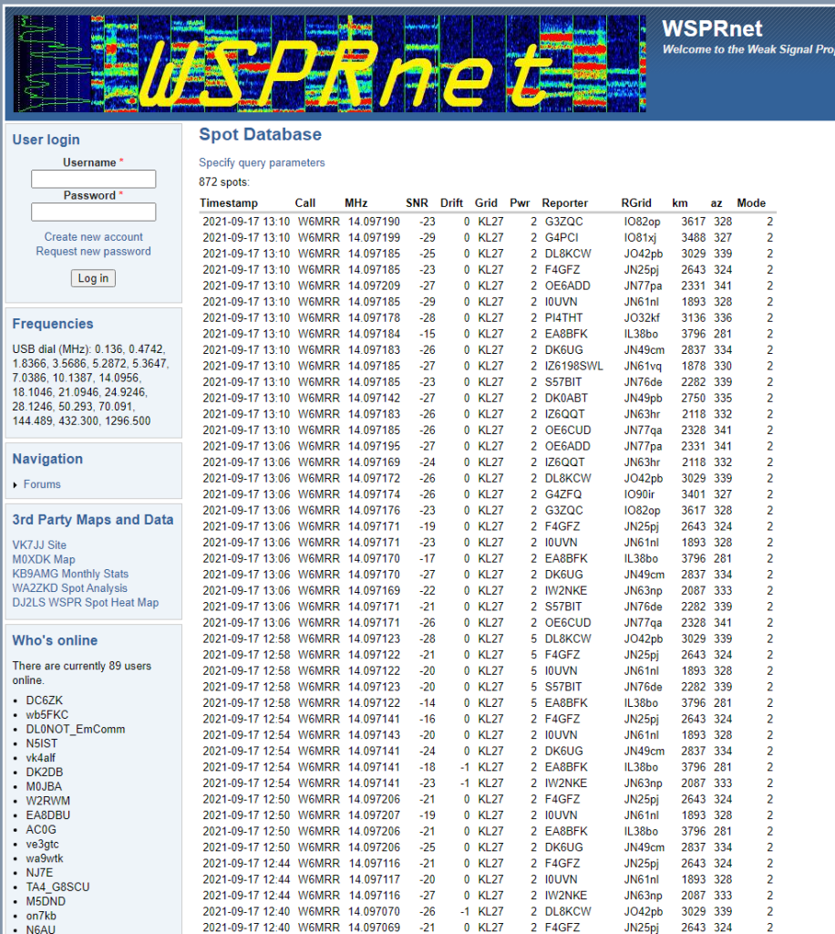 The WSPR power field is used to convey altitude. (I’m using a 10 mW output into a dipole). The latest data can be found in the WSPRnet database.