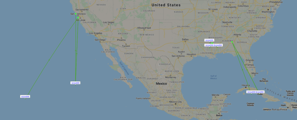 Robert K6RGG and I launched a pico balloon from the Berkeley Marina at noon, Monday September 20. It didn’t start sending so I gave up. I was alerted to beacons received on September 22 over the Pacific in grid square CL20. It was received by the amazing KFS receiver. It was and continues to report 2 W (<36,000′). It is has been received with with very low SNR so I figured there was something wrong with the antenna. The new spool of wire was different from the last batch. The good news was the driven element only weighed 2 grams. The bad was it had over 200 ohms DC resistance.